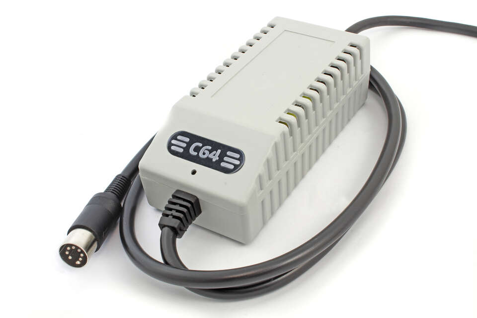 High-quality Commodore 64 replacement power supply unit (PSU). Designed specifically for C64 and VIC-20 systems to preserve them in a pristine condition for years to come. Stabilized and filtered +5V/2.0A DC along with 9V/1.1A AC ensure continued error-free operation of your C64. Robust and sturdy chassis with LED-illumination. Fully fused and electrically protected, with round DIN7 plug matching the original C64 PSU pinout.