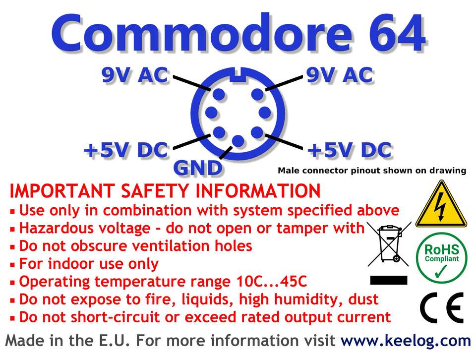 High-quality Commodore 64 replacement power supply unit (PSU). Designed specifically for C64 and VIC-20 systems to preserve them in a pristine condition for years to come. Stabilized and filtered +5V/2.0A DC along with 9V/1.1A AC ensure continued error-free operation of your C64. Robust and sturdy chassis with an OLED digital display and touch sensor. Fully fused and electrically protected, with round DIN7 plug matching the original C64 PSU pinout.